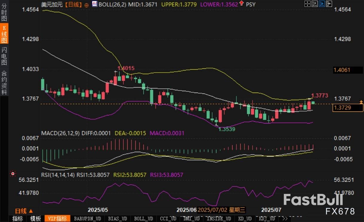 中长期展望:中长期来看分析认为,美元/加元仍处于震荡偏多结构,但需关注贸易谈判进展及美联储政策预期变化。若美元指数维持强势,且市场对美联储降息预期进一步降低,美元/加元有望挑战高点1.4061;