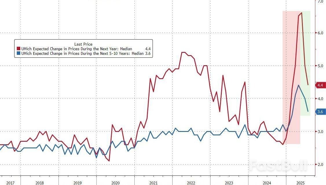 未来5到10年的通胀年增长率为3.6%,也是5个月来的最低水平。与此同时,对关税的担忧继续限制人们对经济前景的乐观情绪。