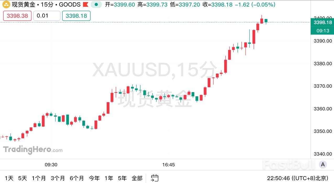 周一美盘,现货黄金突破3400美元/盎司,为6月17日以来首次,日内涨1.48%。特朗普反复无常的贸易政策的不确定性,助推避险资产黄金价格在周一连续第二个交易日吸引买盘。