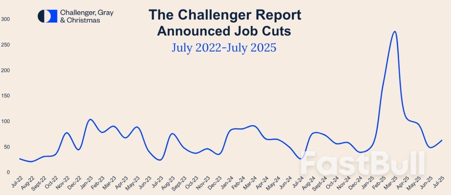 7月美国挑战者裁员数据激增至62,075人,同比暴涨140%,为近十年同期次高,仅次于疫情高峰期;裁员激增的背后因素包括人工智能带来的岗位替代、关税压力以及经济前景不明朗,零售和汽车行业受冲击严重。