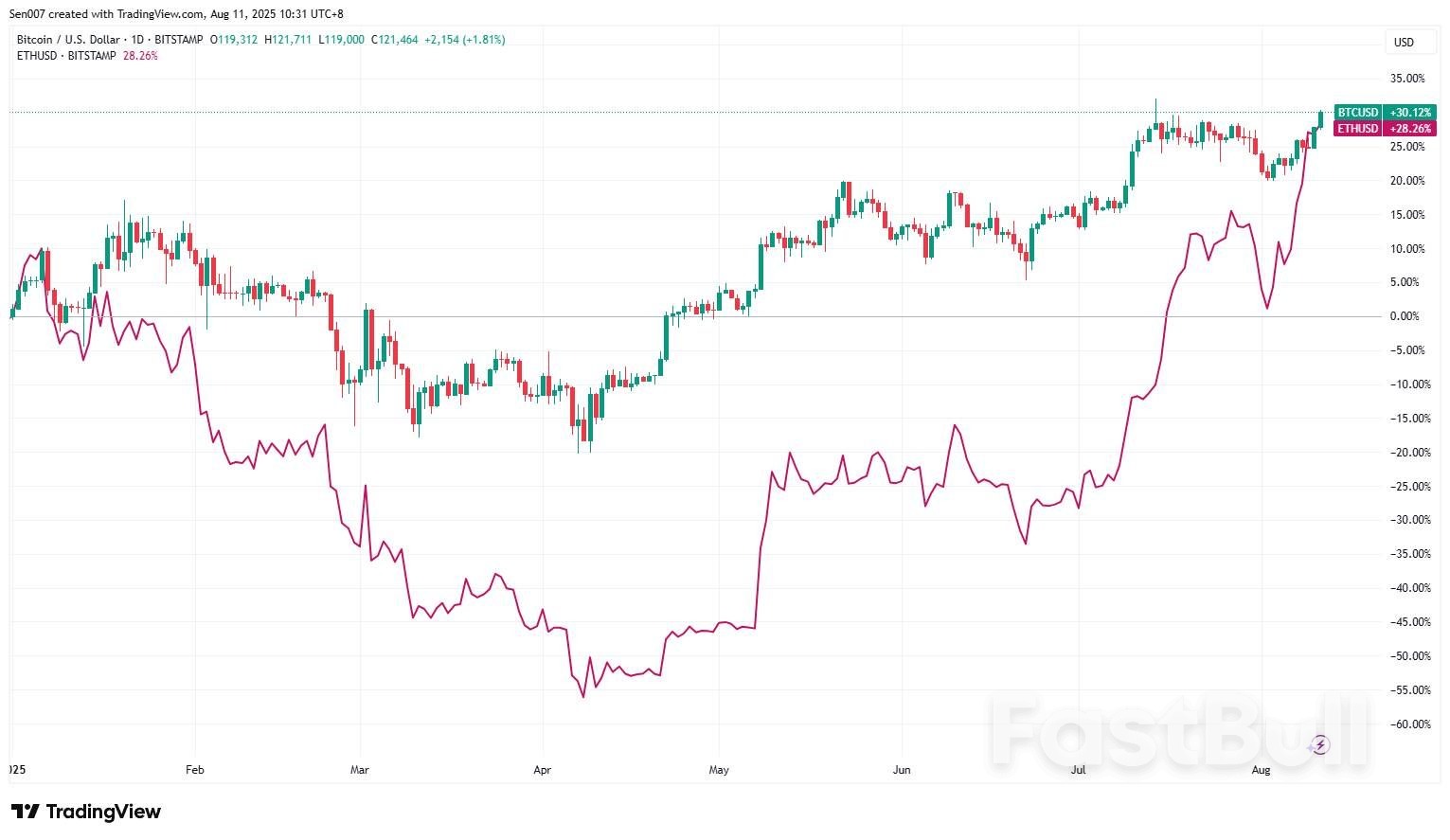 8月11日,比特币(BTC)突破12万美元关口,以太币(BTC)涨至4350美元,创2021年12月以来新高。