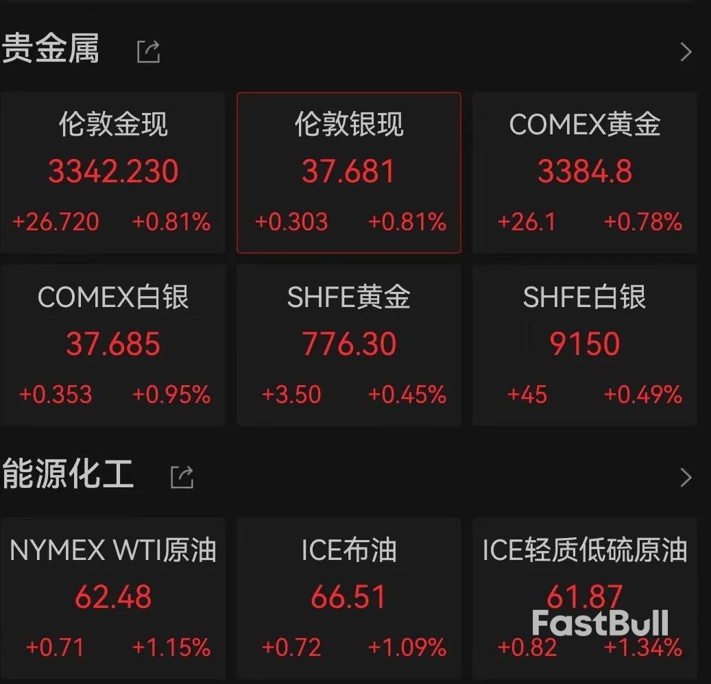 其他资产中,现货黄金涨0.8%至3342美元/盎司,10年期美债收益率下行超1个基点至4.3%附近,美元指数转跌,国际油价走高,美油涨1.15%至62.45美元/桶,布油涨1%至66.5美元/桶。