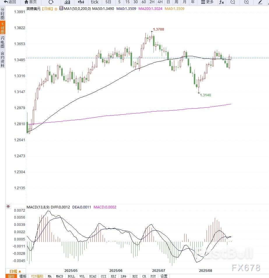 市场解读为鸽派信号,CME FedWatch工具显示,9月降息25个基点的概率已上升至85%。这令美元中长期承压,但短期美元回补需求限制了英镑上行。