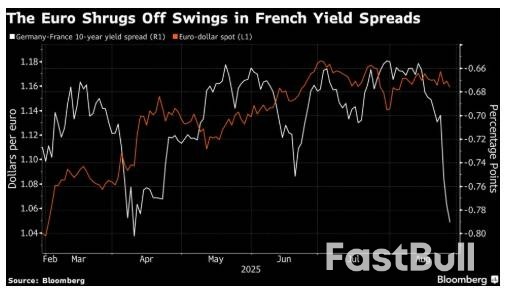 欧元展现出的韧性表明,交易员将当前动荡视为法国国内事务,而非可能蔓延至整个欧元区的系统性风险。类似情景去年已然上演——当时法国股市大幅下跌,且其与德国的收益率利差不断扩大,但汇市对此的反应却十分平淡。