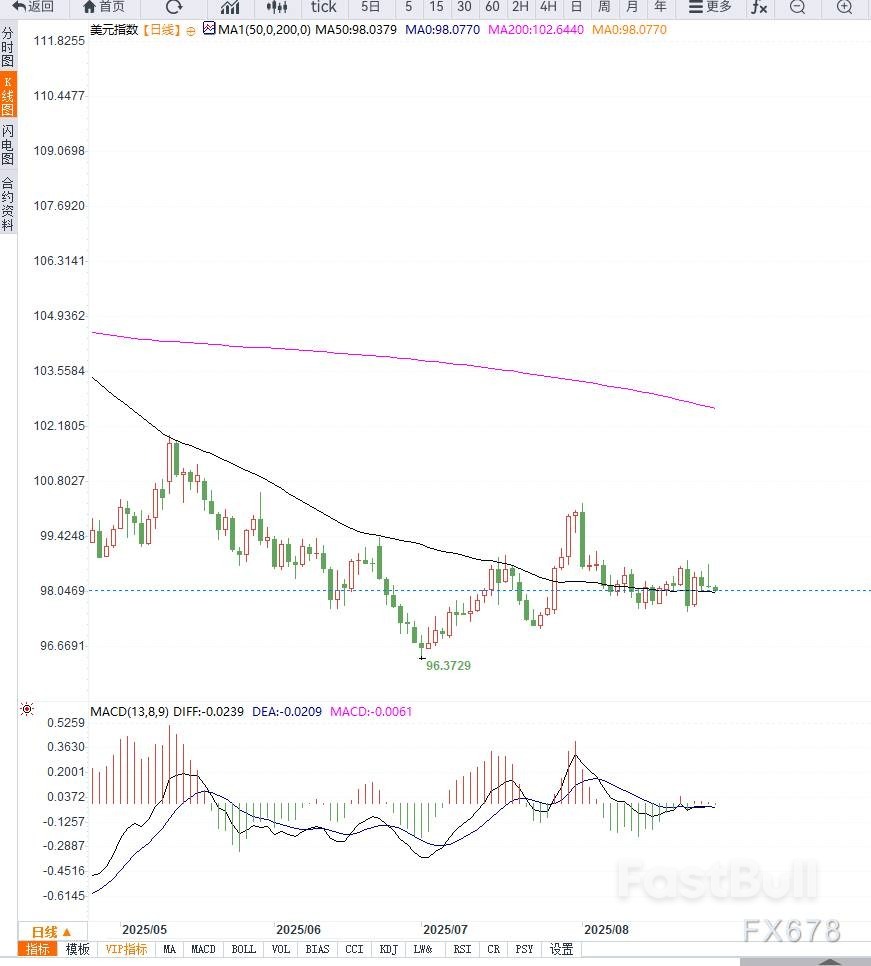 美元开盘即显疲弱,美元指数稳定在98.135,但已连续两日下跌。