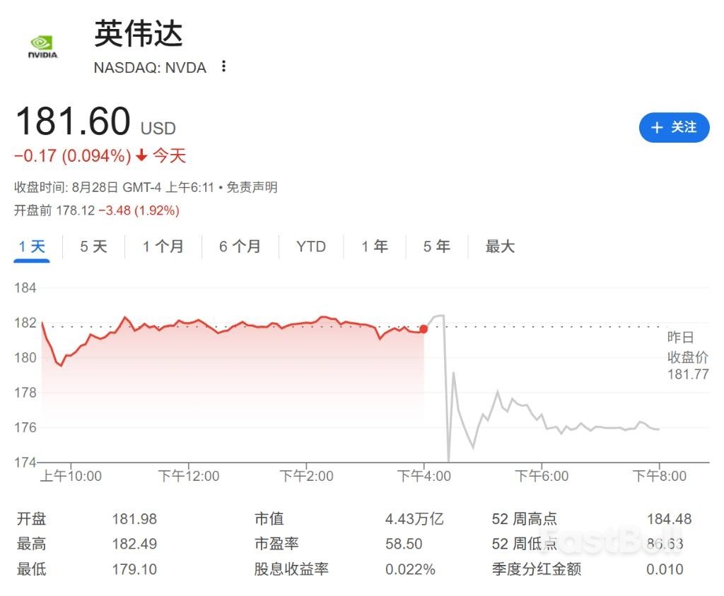 英伟达对当前季度给出了相对温和的营收预测,预计第三财季销售额约为540亿美元。虽然这一数字符合华尔街平均预期,但部分分析师此前预测销售额将超过600亿美元。该公司股价在盘前交易中下跌约1.9%,较此前跌幅有所收窄。