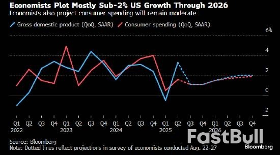 经济学家预计,今年剩余时间乃至2026年,美国经济增长表现料平淡无奇,稳步、由关税推动的通胀料冲击消费者。