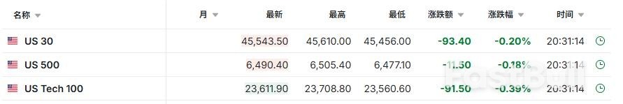 欧股普跌,泛欧股指跌约0.4%,德国DAX指数跌超0.1%,英国富时100指数跌超0.2%,法国CAC 40指数跌超0.2%。