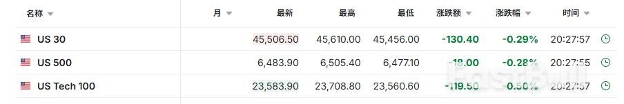 美股期货下跌,标普500期指跌超0.3%。道指期货跌超0.3%,纳指100期货跌超0.5%。