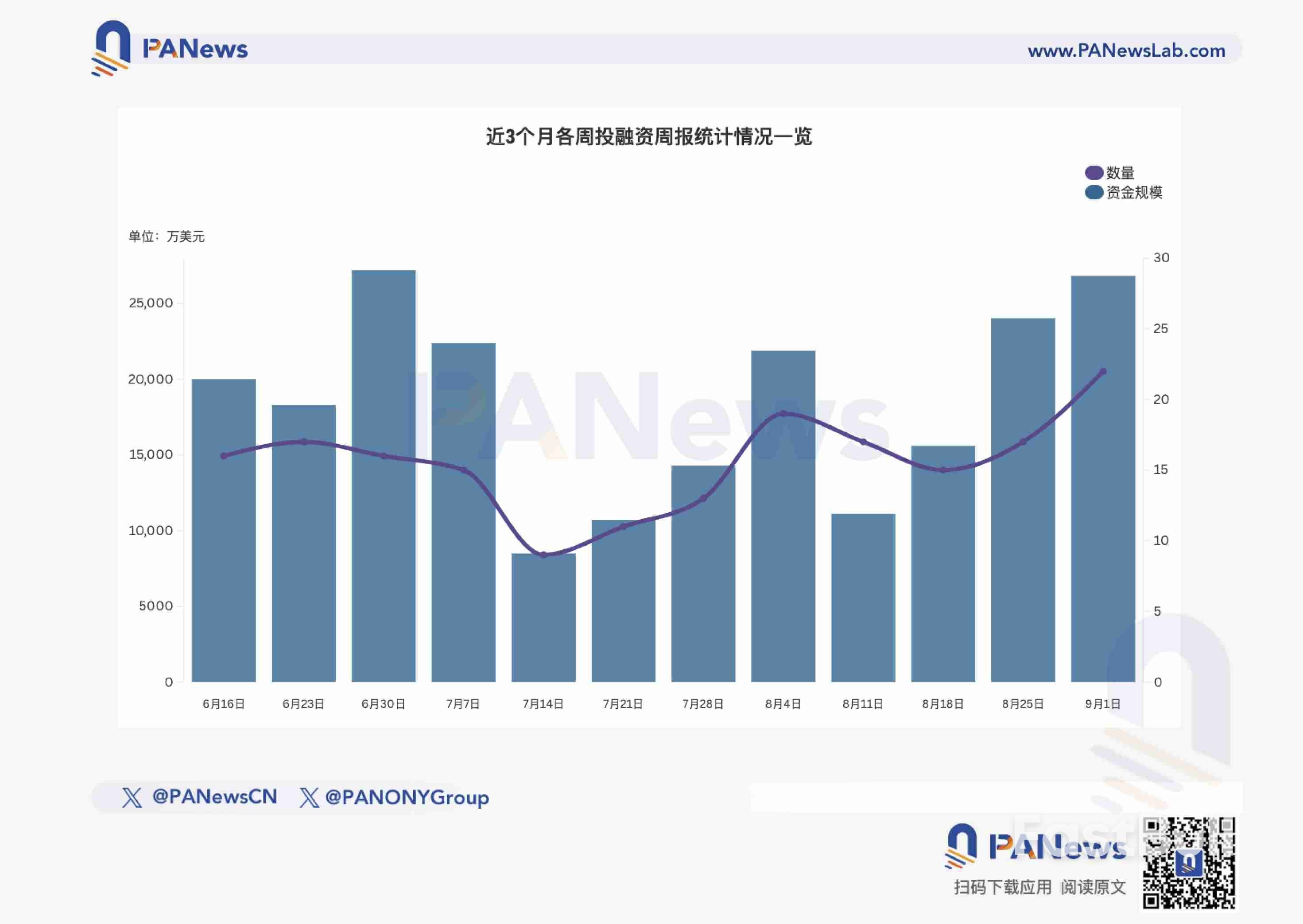 据 PANews 不完全统计,上周(8.25-8.31)全球区块链有22起投融资事件,资金总规模超2.683亿美元,概览如下: