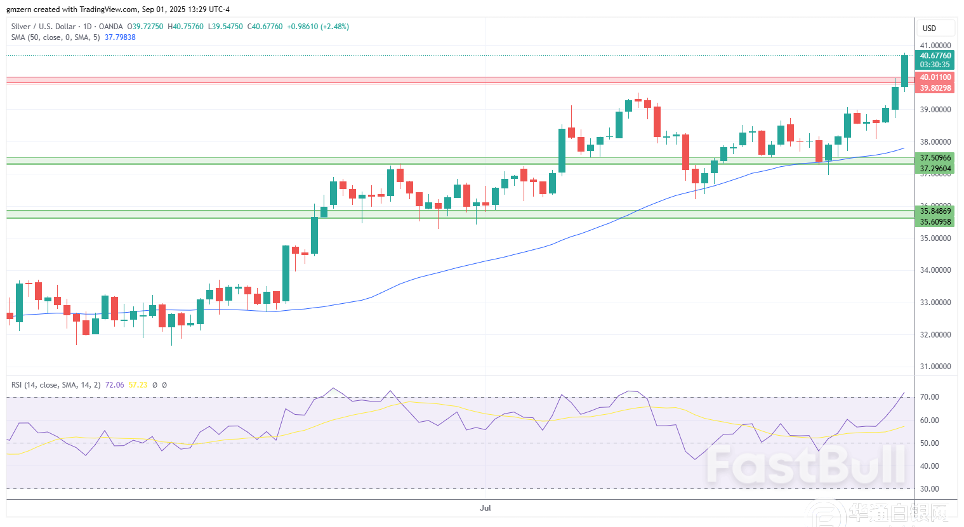 白银成功攀升至39.80-40.00美元阻力位之上,并测试了多年来的高点。