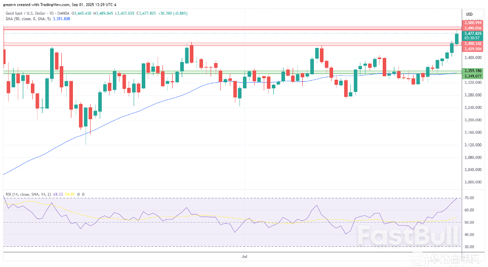 从技术面来看,黄金需要稳定在3490-3500美元阻力位之上,才能获得额外的上行动力。
