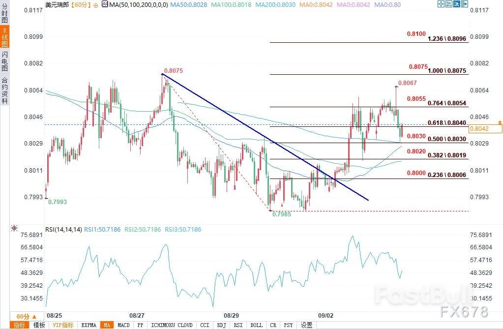 瑞郎走势承压为美元/瑞郎提供了支撑。由于7月瑞士通胀率远低于瑞士国家银行2%的目标,该行官员或在本月政策会议上考虑将利率降至负区间。周四将公布的瑞士8月消费者物价指数(CPI)数据,有望为交易员提供新的交易指引。市场预计,该数据同比涨幅将稳定在0.2%,环比则持平。