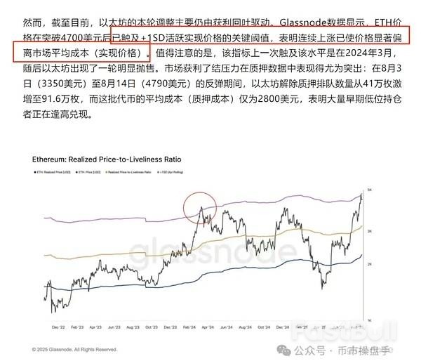 相较于比特币,以太坊当前价格偏离市场平均成本的程度更为显著,已升至近三年来的高位(活跃实现价格+1标准差)。因此,以太坊的调整周期预计将长于比特币,可能持续5至10周。鉴于资金流入依然强劲,调整或以温和方式进行,通过时间换空间,即在4000至4600区间内反复震荡。