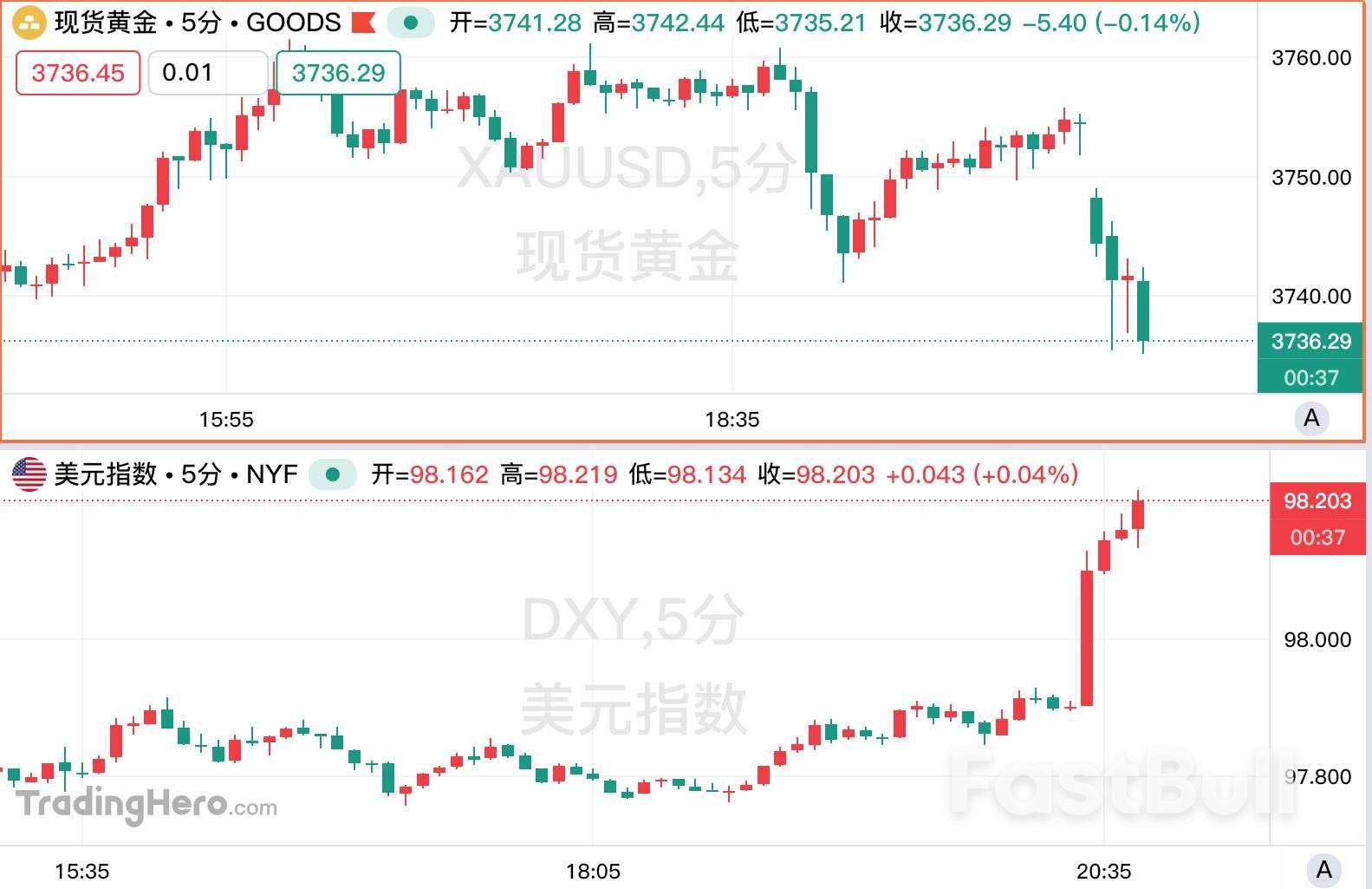 数据公布后,现货黄金短线下跌近20美元,美元指数拉升近30点。