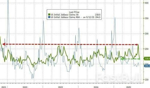 美国劳工部周四公布的数据显示,截至9月20日当周,首次申请失业救济人数经季节性调整后下降14000人,至218000人。这是自7月中旬以来单周初请失业金人数的最低水平,也远低于市场预期的23.5万人。