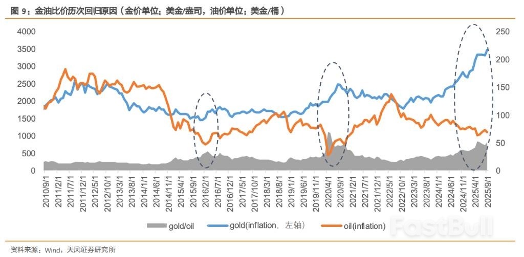 当前金油比价是历史次高,仅次于2020年疫情原油胀库负价格阶段。 我们认为定价因素差异——
