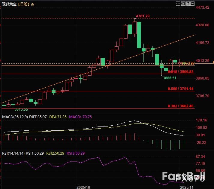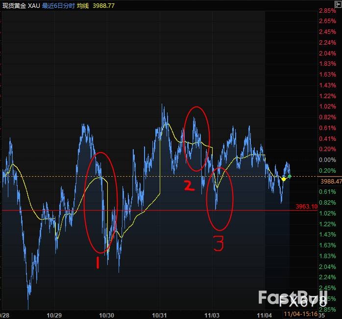 周二(11月4日)亚欧时段现货黄金走出探底回升走势,黄金回踩了周一的黄金利空的低点,以及上周五的低点。目前小幅下跌0.21%交投于3992美元附近。