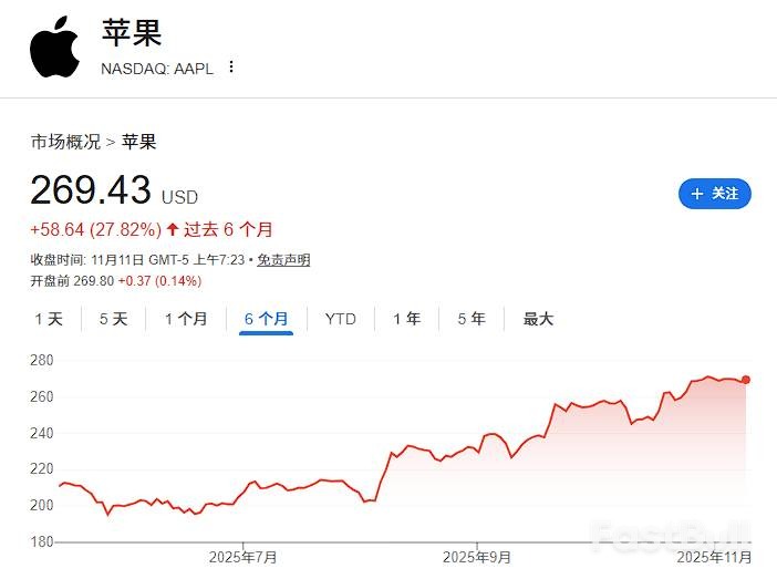 上周科技股因AI支出担忧承压时,苹果展现出明显的抗跌性。当其他科技股深陷跌势时,苹果五个交易日几乎持平。事实上,今年下半年以来苹果股价上涨31%,远超标普500指数、纳斯达克100指数及多数科技巨头竞争对手。