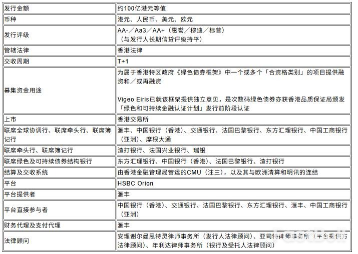 11月11日,香港特区政府宣布,在政府可持续债券计划下成功定价约100亿港元等值的数码绿色债券,涵盖港元、人民币、美元及欧元。这批数码绿色债券在11月10日定价,保留了以往发行的主要创新特性,并在多个范畴应用更多创新技术上取得突破,包括将数码货币应用于交收程序;扩大规模;加强全球标准的采用等。