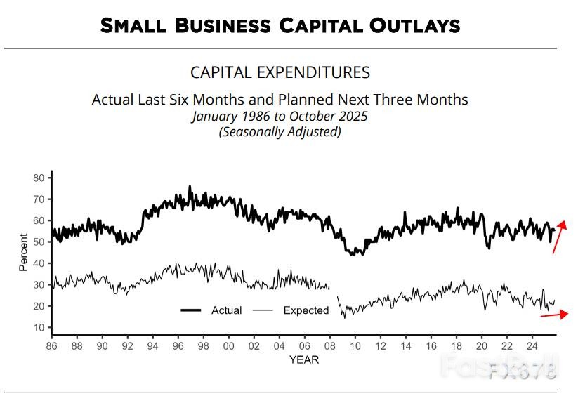 23%的企业主计划未来六个月进行资本支出(较9月升2个百分点),整体资本支出略显乏力。