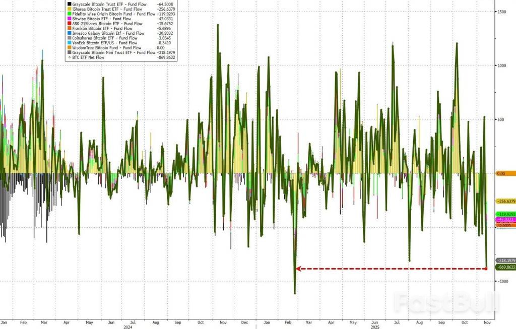 周五比特币一度下跌5%,使其11月累计跌幅扩大至20%左右。周四比特币ETF更是遭遇了自成立以来第二大资金流出。