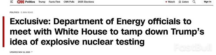 根据CNN报道,两名知情人士透露,能源部长克里斯・赖特(Chris Wright)、国家核安全管理局局长布兰登・M・威廉姆斯(Brandon M. Williams)以及美国国家实验室的官员,计划告知白宫,他们认为特朗普上月提议的为核弹头试验而引爆武器的做法并不可行。