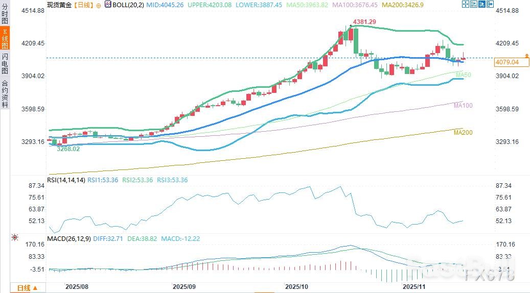 如今,随着交易员重新调整对12月降息的预期(据芝商所美联储观察工具显示,当前降息概率为48.9%),金价已回落至4050-4100美元的中轨区间,这一区域正是短期与长期均线的交汇点。