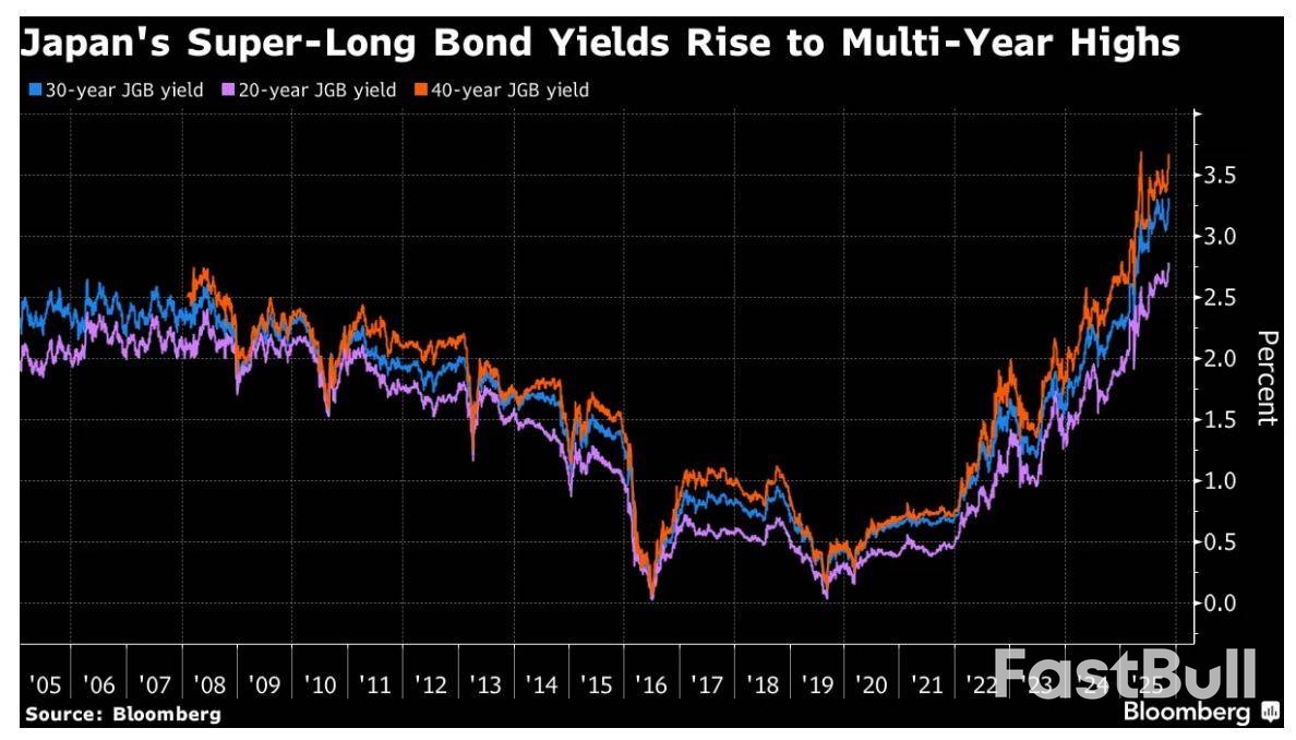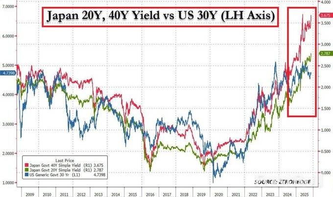 长期美债收益率至关重要,因为它为美国家庭、企业和政府借贷利率提供了基准。然而,不少业内人士当前表示,日本局势的发展或将引发美国收益率随日债收益率同步上升的风险。本周日本十年期利率已飙升至1.78%以上,创逾17年新高。40年期日债收益率更是攀升至3.7%上方历史峰值。