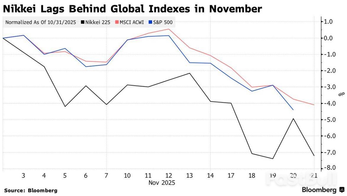 市场对日本新任首相高市早苗的热情已然消退:过去一周东京上市公司市值蒸发约1270亿美元,日元和政府债券亦大幅下跌。
