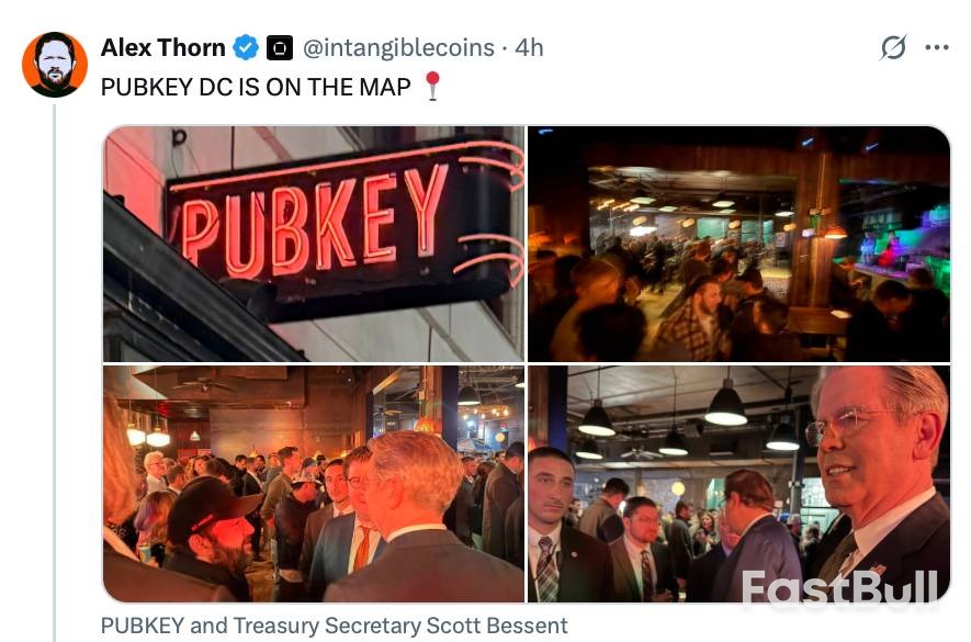 在名为Pubkey的酒吧开业活动上,贝森特在未预先宣布的情况下到场。包括Strive首席投资官Ben Werkman和Nakamoto投资者关系副总裁Steven Lubka在内的多位业内高管迅速做出反应,将此事件描述为投资者一直在等待的决定性"看涨信号",认为这标志着监管层态度的实质性转变。