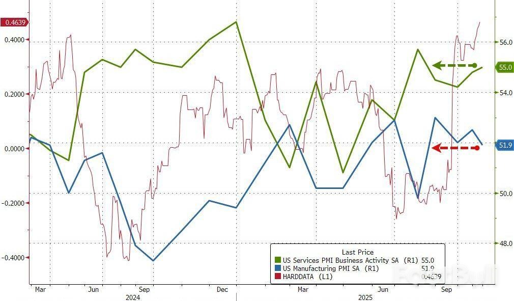 然而,制造商报告了一个令人担忧的组合:新订单增长放缓以及成品库存创纪录增加。若需求不能回升,这些未售库存的累积意味着未来几个月工厂产出扩张可能放缓;而这又可能传导至许多服务行业,导致其增长放缓。