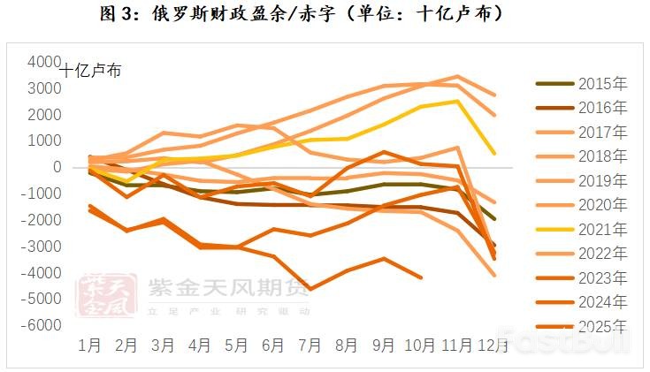 截至2025年10月,俄罗斯财政赤字已高达4.2万亿卢布,远高于年初设定的1.2万亿卢布预算目标。在历经6月与秋季两次上调后,全年赤字预算已被修正至5.7万亿卢布,创下近20年来的最差财政表现。