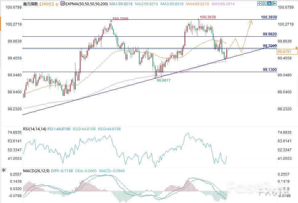 反之,若跌破99.40支撑位,则可能下探99.10,并削弱短期上行结构。目前来看,趋势线仍是决定价格下一步方向的关键观察点。