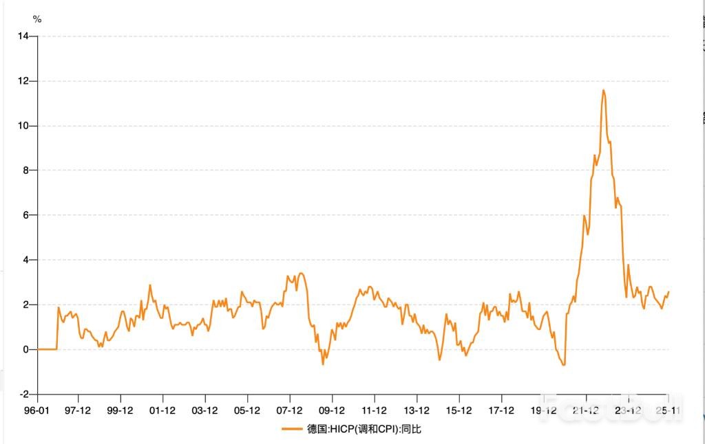 德国11月调和通胀率意外升至2.6%,创九个月新高。尽管欧央行政策制定者近期表示对通胀前景感到满意,但最新数据表明价格稳定风险仍未消散。