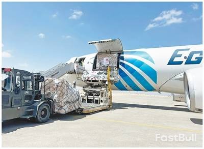 2024年4月19日,工作人员在埃及阿里什国际机场卸载中国援助巴勒斯坦的物资。 |