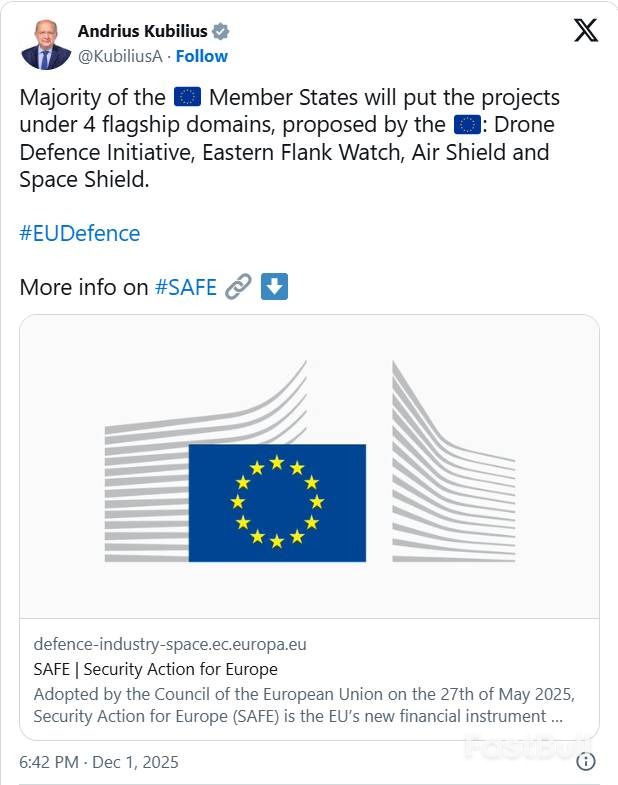据报道,根据"欧洲安全行动基金"制定的联合武器项目,其至少65%的零部件必须在欧盟27个成员国境内生产,但加拿大等伙伴国可以获得豁免。