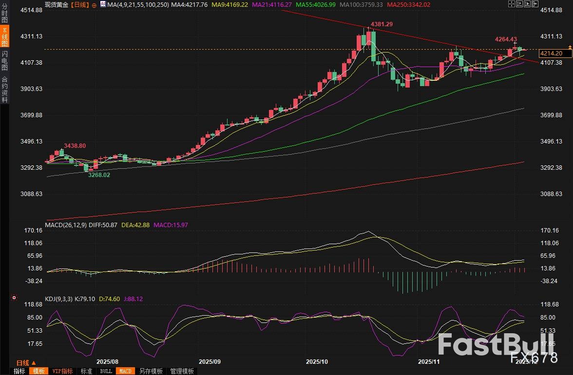 综上所述,黄金市场虽短期面临获利回吐压力,但美联储降息预期、央行强劲购金、美债收益率回落、美元走弱以及地缘政治不确定性等多重因素正合力推动其向上突破。展望未来,随着新年临近,5000美元目标并非遥不可及。投资者应密切关注美联储会议结果和关键数据的表现。