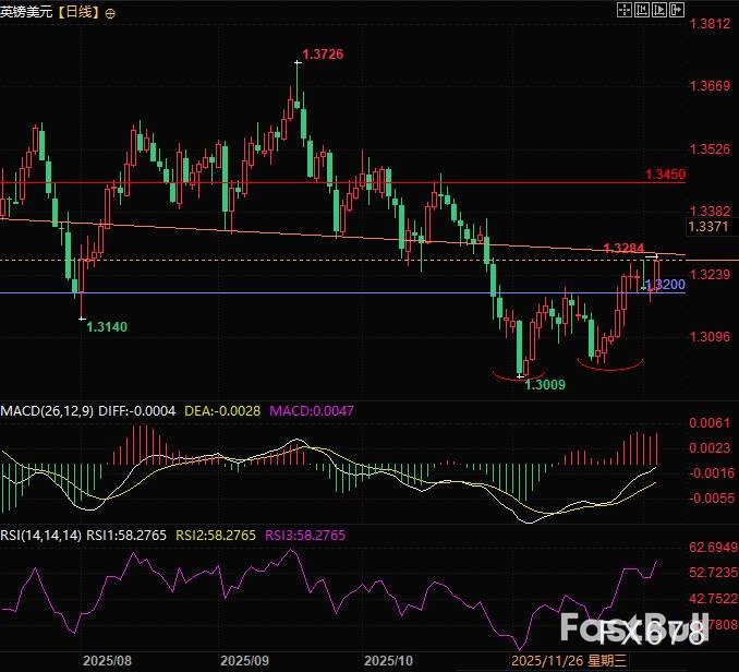 周三(12月3日)亚欧时段,英镑兑除澳元系货币外的主要货币对均呈现明确上行态势。其中,英镑兑美元涨幅达0.43%,交投于1.3268附近,延续了英国预算案公布后的缓解性反弹势头。