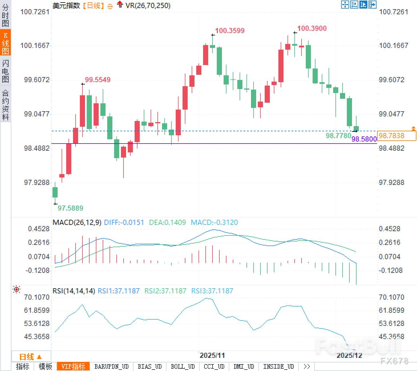 12月4日,周四欧洲时段,美元指数目前交投98.80附近,正处于一个高度敏感的时间节点。12月10日,美联储将召开联邦公开市场委员会(FOMC)会议,市场普遍预期将下调联邦基金利率25个基点,使利率区间落入3.50%至3.75%。这一操作看似已是"板上钉钉",背后却反映出美国经济动能正在放缓的现实。劳动力市场逐步走弱、通胀压力持续回落,为降息打开了空间。