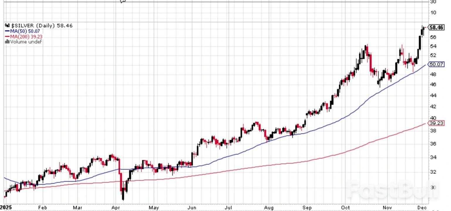 但Hemke指出,本轮行情的技术形态明显不同。白银于去年10月3日突破48美元,随后一周首次收于50美元上方,并在48美元附近多次测试支撑后继续上涨。这种能够守住48美元关口的表现,是1980年和2011年所不具备的。他表示,要确认双顶形态,白银需要跌破46美元。