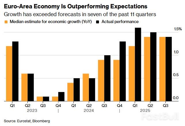 欧洲央行此前的预测显示,经济增长将在明年放缓至1%,随后在2027年再次回升。施纳贝尔表示,"自那以后,前景变得更加乐观"。上周五公布的数据已经显示,第三季度的表现好于最初预期。