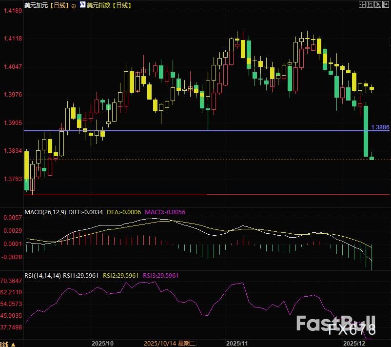 这一走势的直接诱因是上周五公布的加拿大11月劳动力市场报告——数据表现远超市场预期,显著提振加元市场人气。