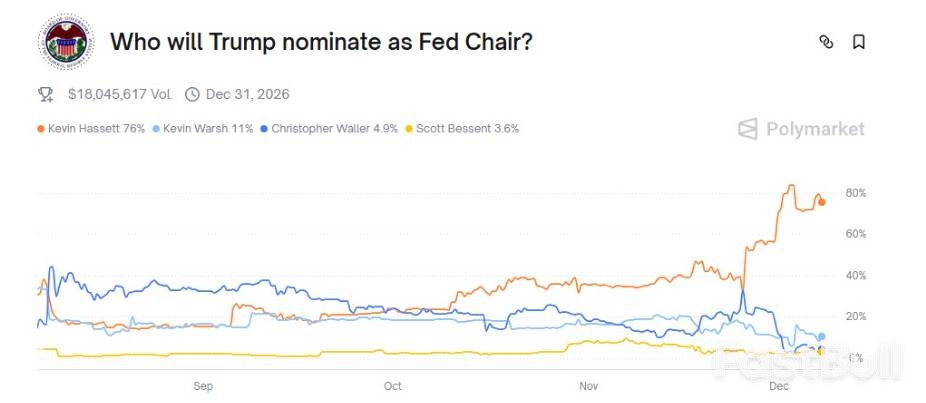 鲍威尔的美联储主席八年任期将于明年五月结束,市场普遍预期他将被特朗普的首席经济顾问凯文·哈塞特取代。特朗普上周也暗示了这一点,称他将人选名单缩小至一人,随后在白宫的一场活动中介绍哈塞特为"潜在的美联储主席"。