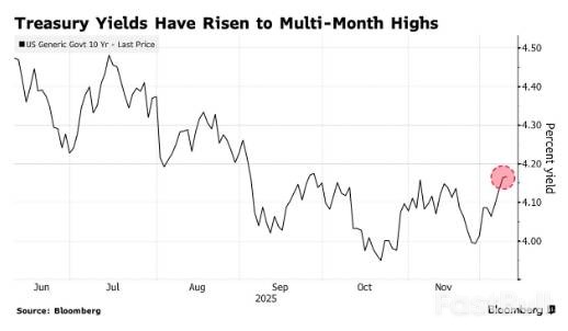 然而,市场似乎已经对此作出了反应。一个值得注意的现象是,尽管美联储本周大概率将再次降息25个基点,但美国10年期国债收益率却一反常态,从10月的低点攀升了超过20个基点。