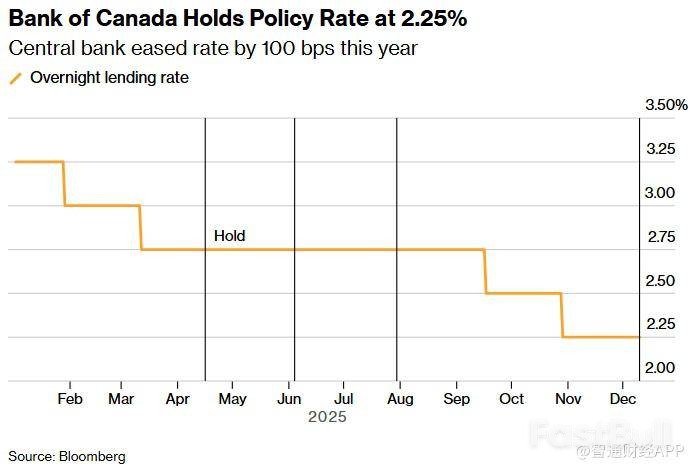 加拿大央行周三宣布,维持基准利率在2.25%不变。尽管近期经济数据显示出比预期更强的韧性,但央行表示,面对贸易战带来的不确定性,当前利率水平仍然是适当的,有助于将通胀稳定在目标附近。
