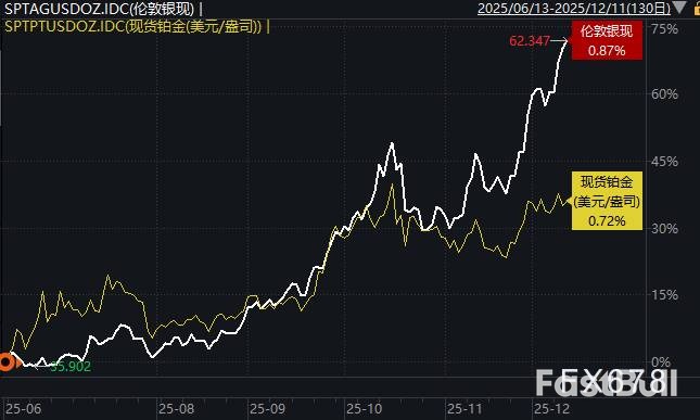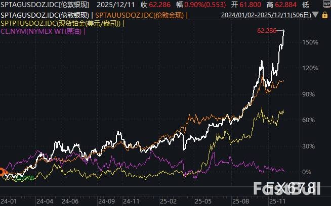 与原油的颓势形成鲜明对比,白银和铂金在2025年大放异彩。