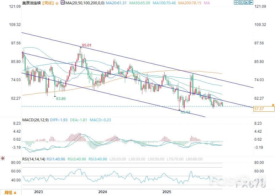 从技术面看,2025年WTI油价主要在56-71美元区间波动。2026年的关键在于,油价能否守住55美元的支撑位。若跌破并下穿已持续三年的下行通道,熊市将进一步加深。反之,如果价格能突破位于79美元/桶附近的200周移动平均线并站稳80美元关口,则可能迎来一波反弹行情。