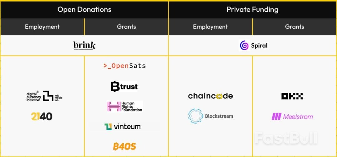 报告确定了13个主要赞助组织:Blockstream、Chaincode Labs、MIT、Spiral(前Square Crypto)、OKX、人权基金会、Brink、Btrust、OpenSats、Vinteum、Maelstrom、B4OS以及2140。