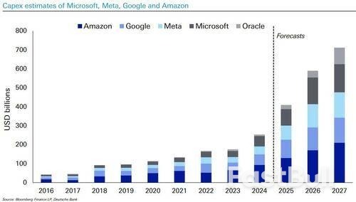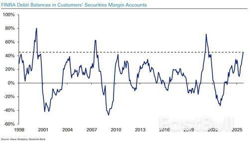 德意志银行特别提到了发达市场主权债务的风险。随着长期收益率接近名义GDP增速,曾经的"债务融资红利期"已经结束。美国持续的巨额赤字水平通常仅见于战争时期,这将对长期财政可持续性构成挑战。